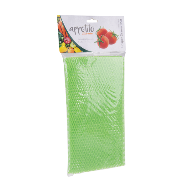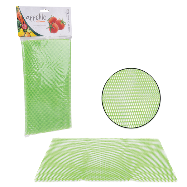 SALE APPETITO "KEEP FRESH" CRISPER DRAWER MAT SKU: 3612-1 Barcode: 9313492136128Pack Size: 72 The "Keep Fresh" Crisper Drawer Map from Appetito uses a cushioned mesh construction to increase the airflow around fruit and vegetables, keeping food elevated