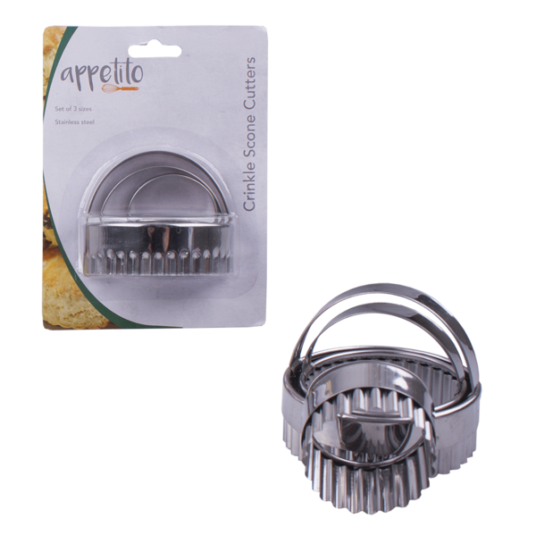 APPETITO STAINLESS STEEL CRINKLE SCONE CUTTERS W/ HANDLE SET 3