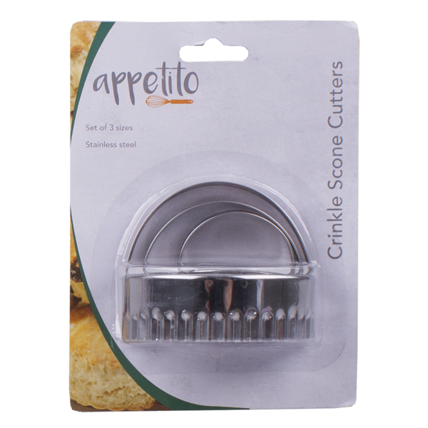Whip up perfectly-sized scones, biscuits and pastries every time with these Appetito Crinkle Scone Cutters. The stainless steel set features three handy sized c