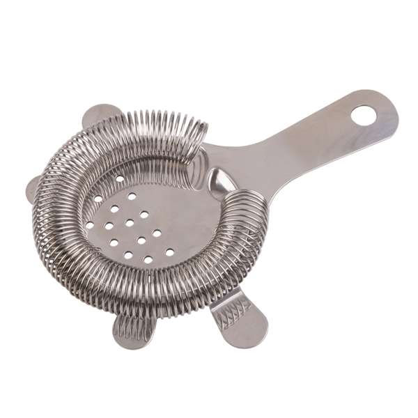 Strain cocktails with precision using the stainless steel Bartender Cocktail Strainer. Comprising of a flat disc and affixed coiled spring, this professional Hawthorne Strainer will remove crushed ice and other solid ingredients such as muddled fruit or mint leaves from a mixed drink, while allowing liquid to pass through the small holes in the device as the beverage is poured.