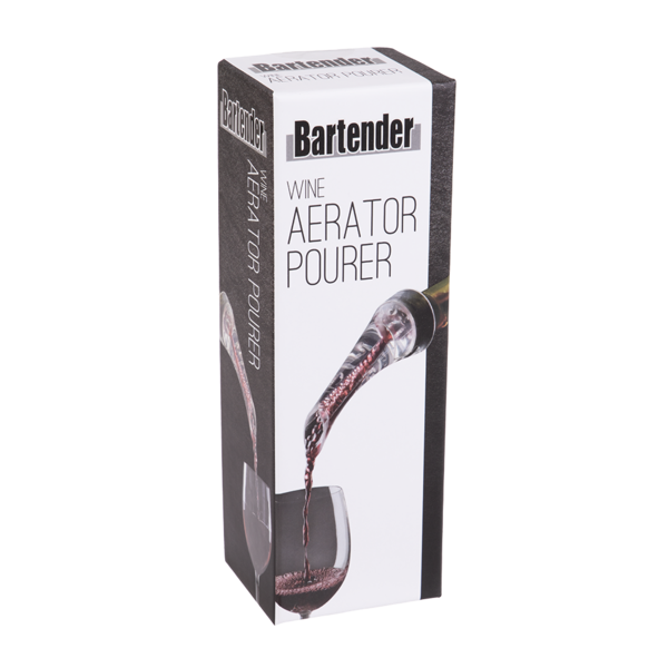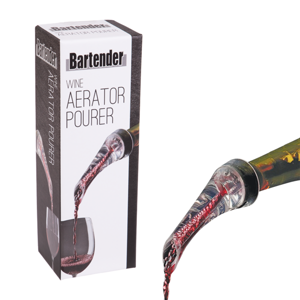 BARTENDER WINE AERATOR POURER SKU: 7057-1 Barcode: 9313492170573Pack Size: 48 Serve up the perfect pour with the all-in-one Bartender Wine Aerator Pourer. Maximise flavour and aroma of your wine by aerating and oxidising as you pour, whil