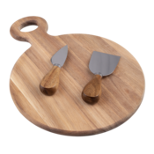 ALFRESCO LANE 3 PIECE ROUND ACACIA WOOD CHEESE PADDLE W/ KNIVES 30CM X 22CM