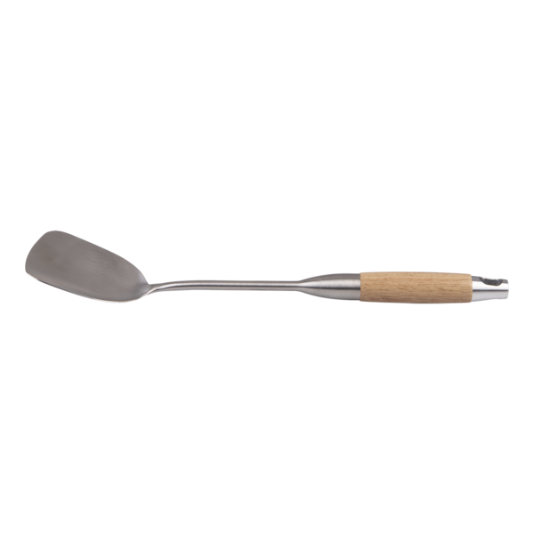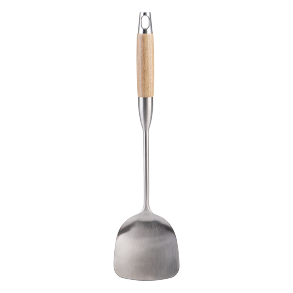 NEW D.LINE STAINLESS STEEL WOK SPATULA W/ BEECHWOOD HANDLE SKU: 1320 Barcode: 9313492913200Pack Size: 30/60 Elevate your kitchen tools with the d.line Wok Spatula, expertly crafted for high-performance cooking. Featuring a stainless steel broad, angled head, this spat