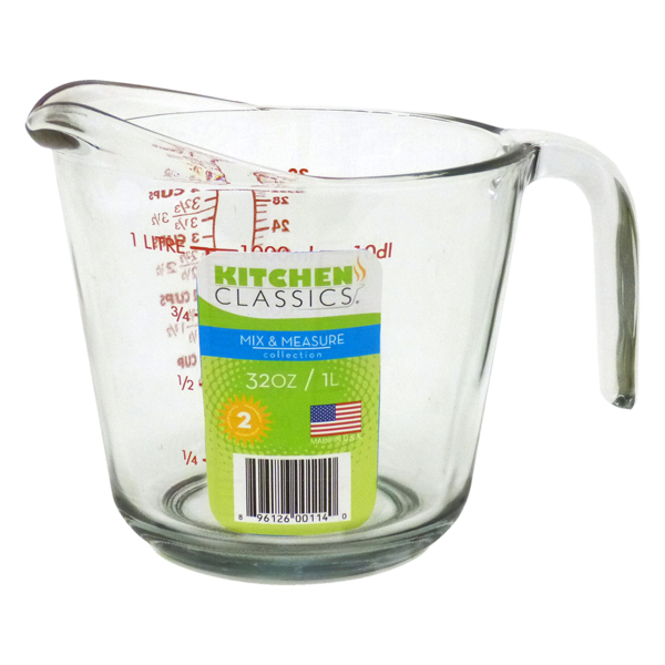 First-quality, USA made; the Kitchen Classics Glass Measure Jug is composed of soda-lime (a blend of silica, soda, and lime) to produce crystal-clear tempered glass, resistant to thermal shock and BPA-free. This Measure Jug includes both metric and imperial measurements, and a handle and spout for easy pouring.