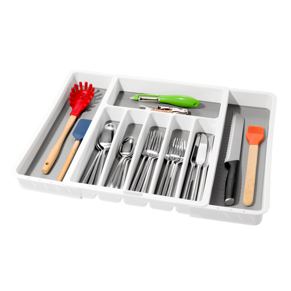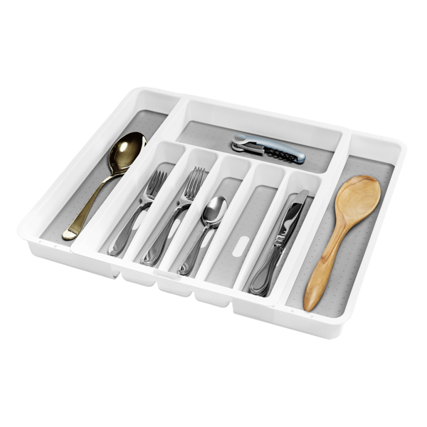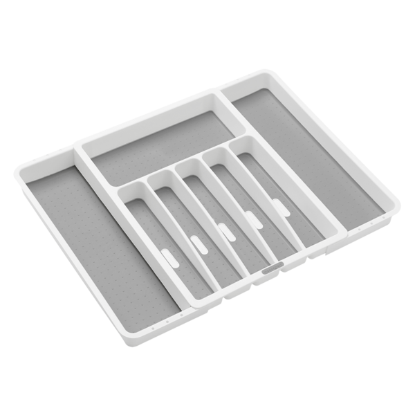MADESMART EXPANDABLE CUTLERY TRAY - WHITE SKU: 4546 Barcode: 764195293080Pack Size: 6 <p>The Madesmart® Expandable Cutlery Tray is a traditional 6 compartment tray expanding to 8, fitting most kitchen drawers to help with cutlery and utensil orga