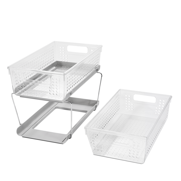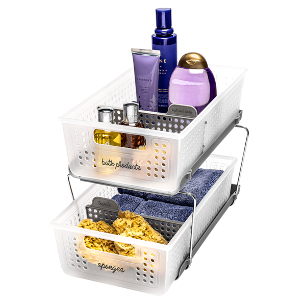 The Two Level Storage with Dividers by Madesmart® makes organisation easy, working as a handy and cost effective alternative to built-in shelves, created with the bathroom in mind.