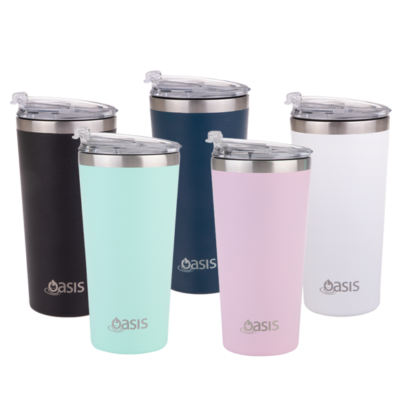 OASIS STAINLESS STEEL DOUBLE WALL INSULATED 'TRAVEL MUG' 480ML SKU: 8901 Pack Size: 24 COLOUR - CARNATION MATTE BLACK MATTE MINT NAVY <p>Perfect for coffee or tea lovers on the go, the generously sized Stainless Steel Double Wall Insulated ‘Travel Mug’ features a convenient leak-proof, screw-o