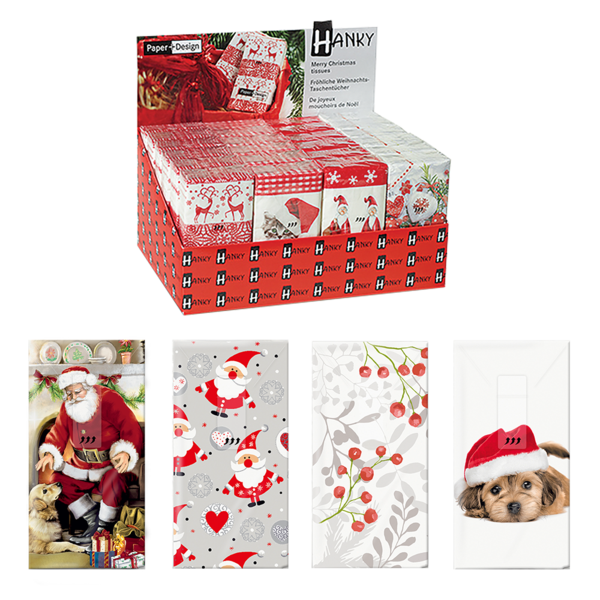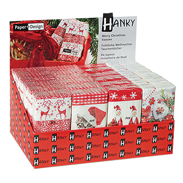 PAPER+DESIGN HANKY DISPLAY UNITS XMAS (CDU 24) - RED THEME