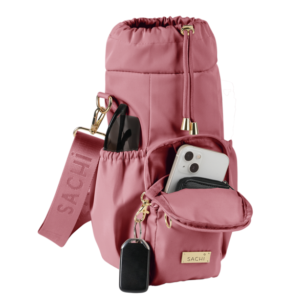 NEW SACHI CROSSBODY INSULATED BOTTLE BAG SKU: 8830 Pack Size: 6 COLOUR - ALABASTER BLACK BLUSH LATTE ORCHID The perfect accessory for your everyday life, the deluxe Crossbody Insulated Bottle Bag from Sachi is etched with detail and sophistication inside and out.<br/>