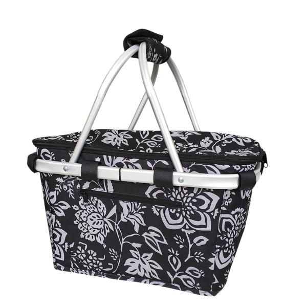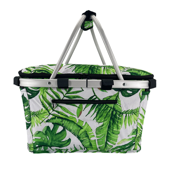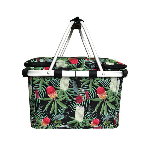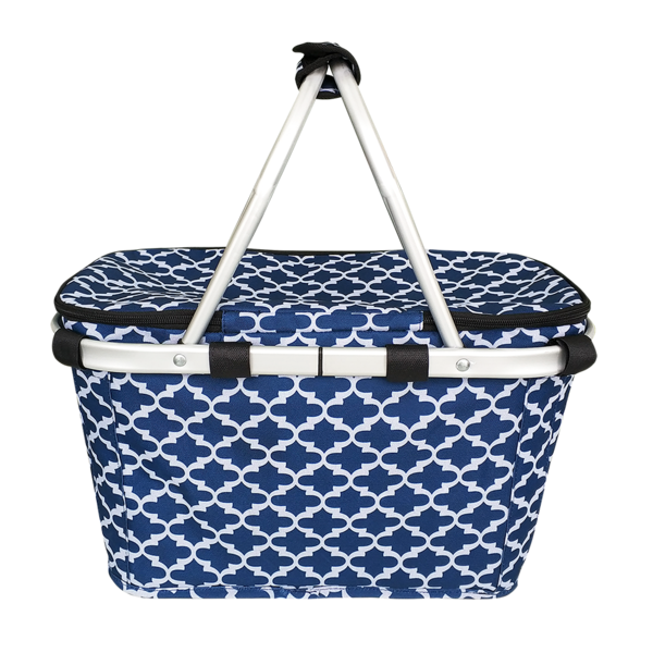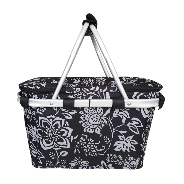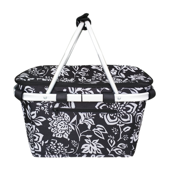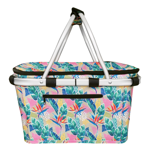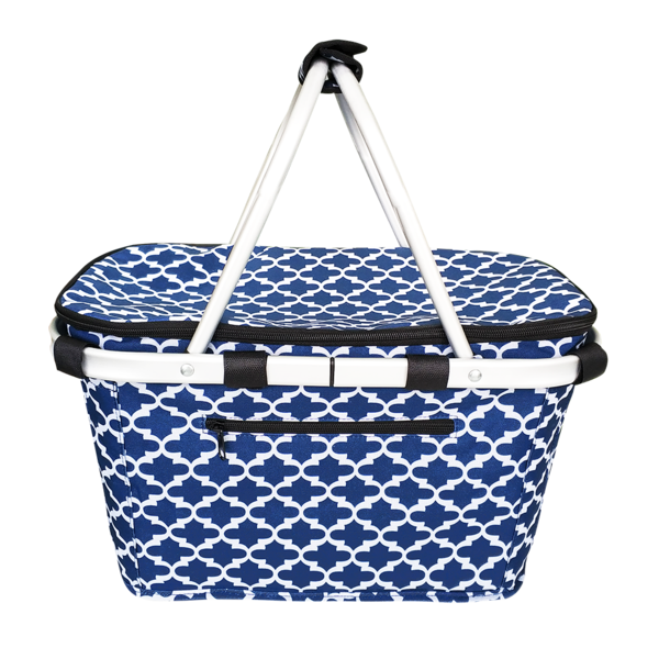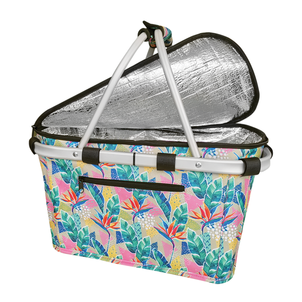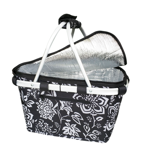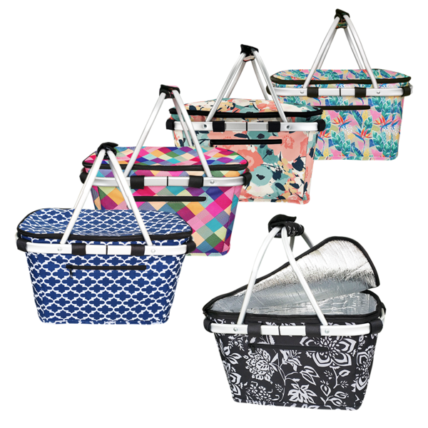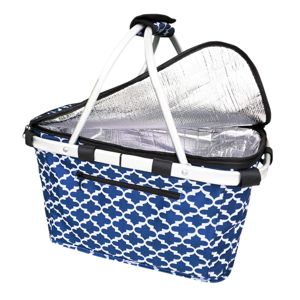 SACHI INSULATED CARRY BASKET W/ LID SKU: 4696 Pack Size: 6 DESIGN - BANKSIA BLUE STRIPES BOTANICAL CAMELLIA BLACK HARLEQUIN JUNGLE LEAF MOROCCAN NAVY Keep food and drinks fresh with the Insulated Carry Basket with Lid from Sachi.<p> <p> Durable, while being easy to clean and store, the modern basket, which