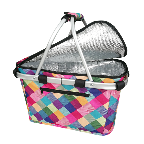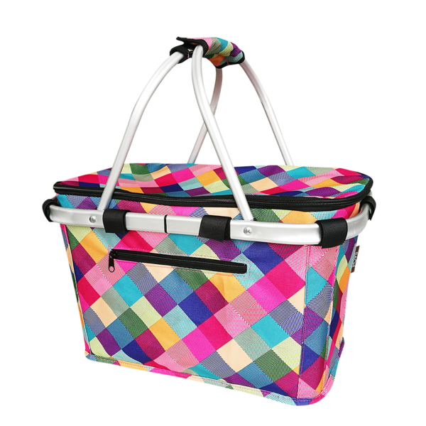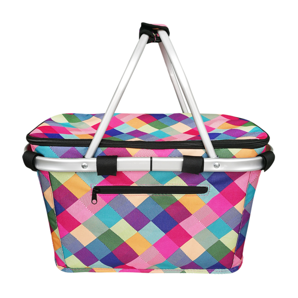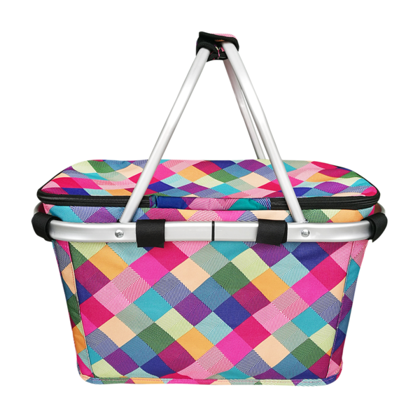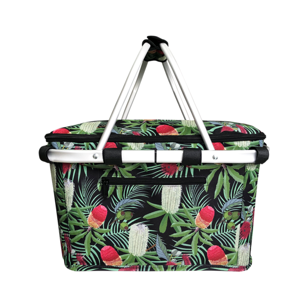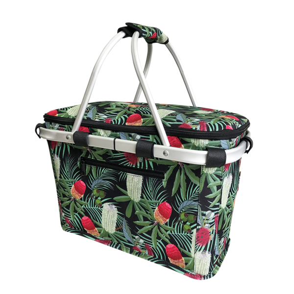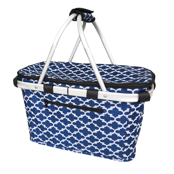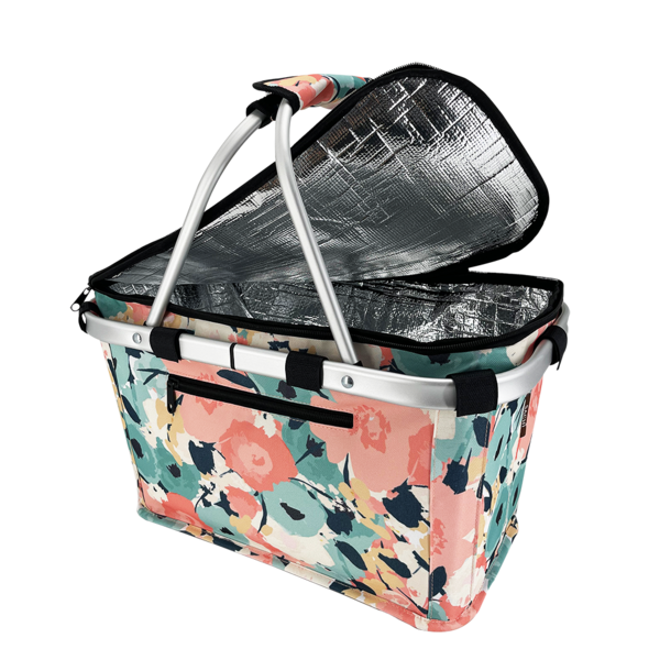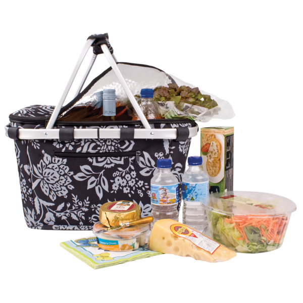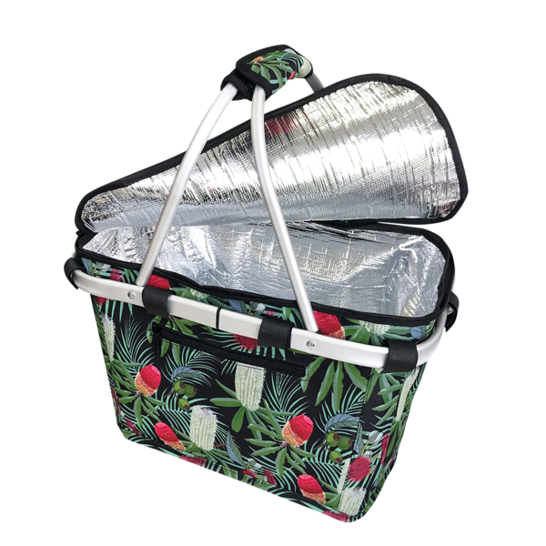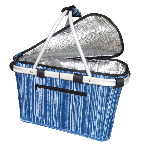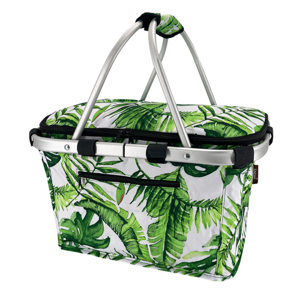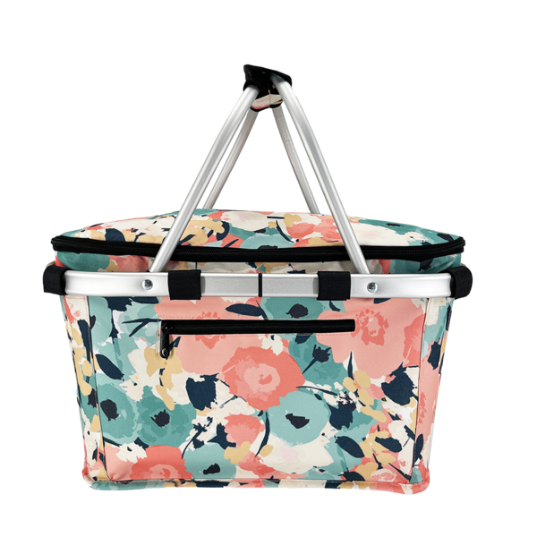 SACHI INSULATED CARRY BASKET W/ LID SKU: 4696 Pack Size: 6 DESIGN - BANKSIA BLUE STRIPES BOTANICAL CAMELLIA BLACK HARLEQUIN JUNGLE LEAF MOROCCAN NAVY Keep food and drinks fresh with the Insulated Carry Basket with Lid from Sachi.<p> <p> Durable, while being easy to clean and store, the modern basket, which