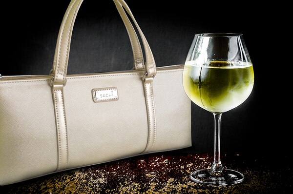 SALE SACHI INSULATED WINE PURSE SKU: 8833 Pack Size: 6 DESIGN - BLUSH CHAMPAGNE GOLD CHARCOAL Carry your wine in style with the Sachi Insulated Wine Purse!<p> <p> This elegant purse, with an insulated interior and leak-proof lining, holds a standard si