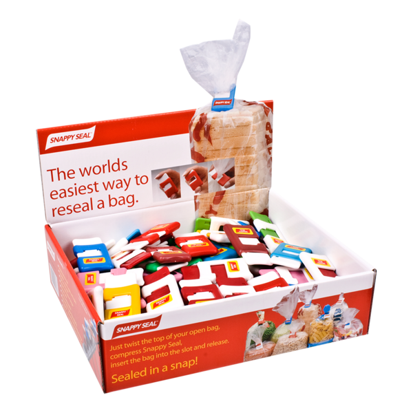 SALE SNAPPY SEAL (CDU 100) - ASST. COLOURS SKU: 3616-1 Barcode: 9330373000781Pack Size: 8 Snappy Seal is the clever clip that reseals bags tightly - quick and easy.<p> <p> Reusable, this clip seal is tight, strong, sturdy and durable. Freezer safe,