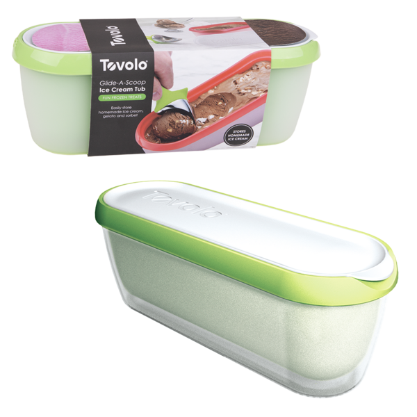 The Glide-A-Scoop™ Ice Cream Tub from Tovolo neatly stores homemade ice cream, gelato, and sorbet.<br/> <br/> The slender design and non-slip base allows for