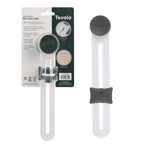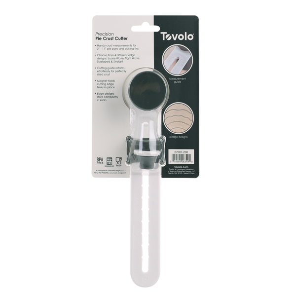 SALE TOVOLO PRECISION PIE CRUST CUTTER - CHARCOAL SKU: 4827 Barcode: 010591063490Pack Size: 36 Cutting the perfect sized pie crust has never been easier with the Precision Pie Crust Cutter by Tovolo.<p> <p> The cutter includes 4 edge designs - loose wa