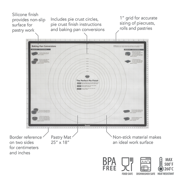 Create perfect pastries and other bakes with the "Truebake" Silicone Pastry Mat from Tovolo.<p> <p> Being multi-functional, the mat can be used as a dough kne